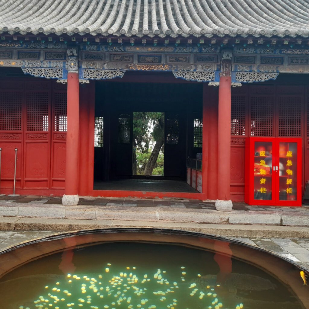 My children especially enjoyed running around the courtyards, playing with water in one of the jian (large Chinese bronze vessels), and exploring the halls dedicated to Buddhist deities. A jian is commonly found in Buddhist temples across China, and visitors often toss coins into them for good luck.