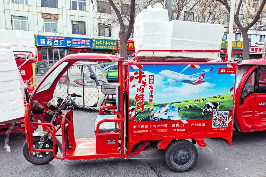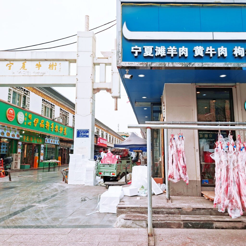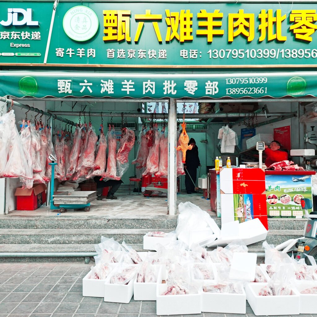 The most important kind of meat eaten in Yinchuan is mutton, and the mutton being sold here can even be shipped to other areas in China via Jingdong air delivery, as advertised on these tuk-tuks here.