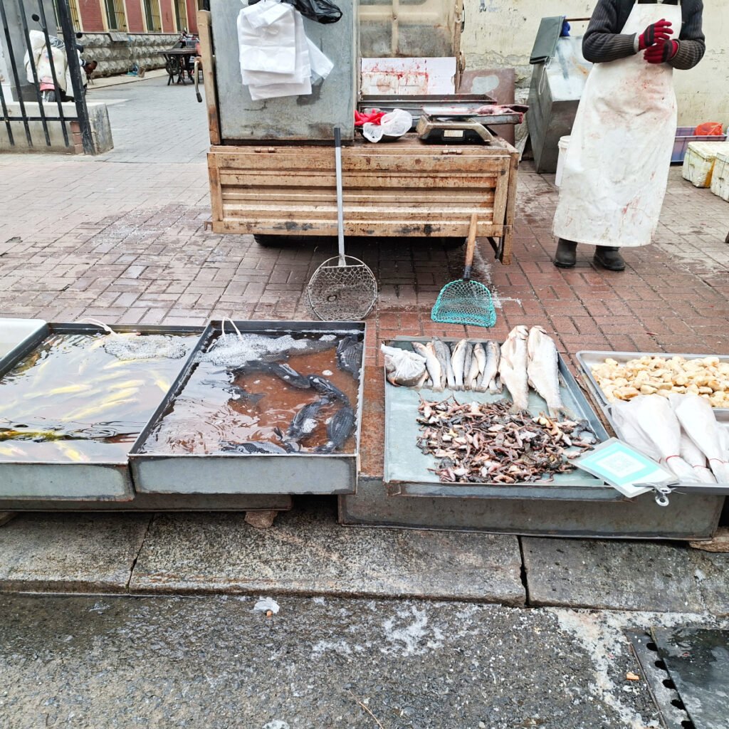Let me share a few pictures of a market here in Siping with you. As you can see in the pictures, produce is sometimes placed on the floor.
